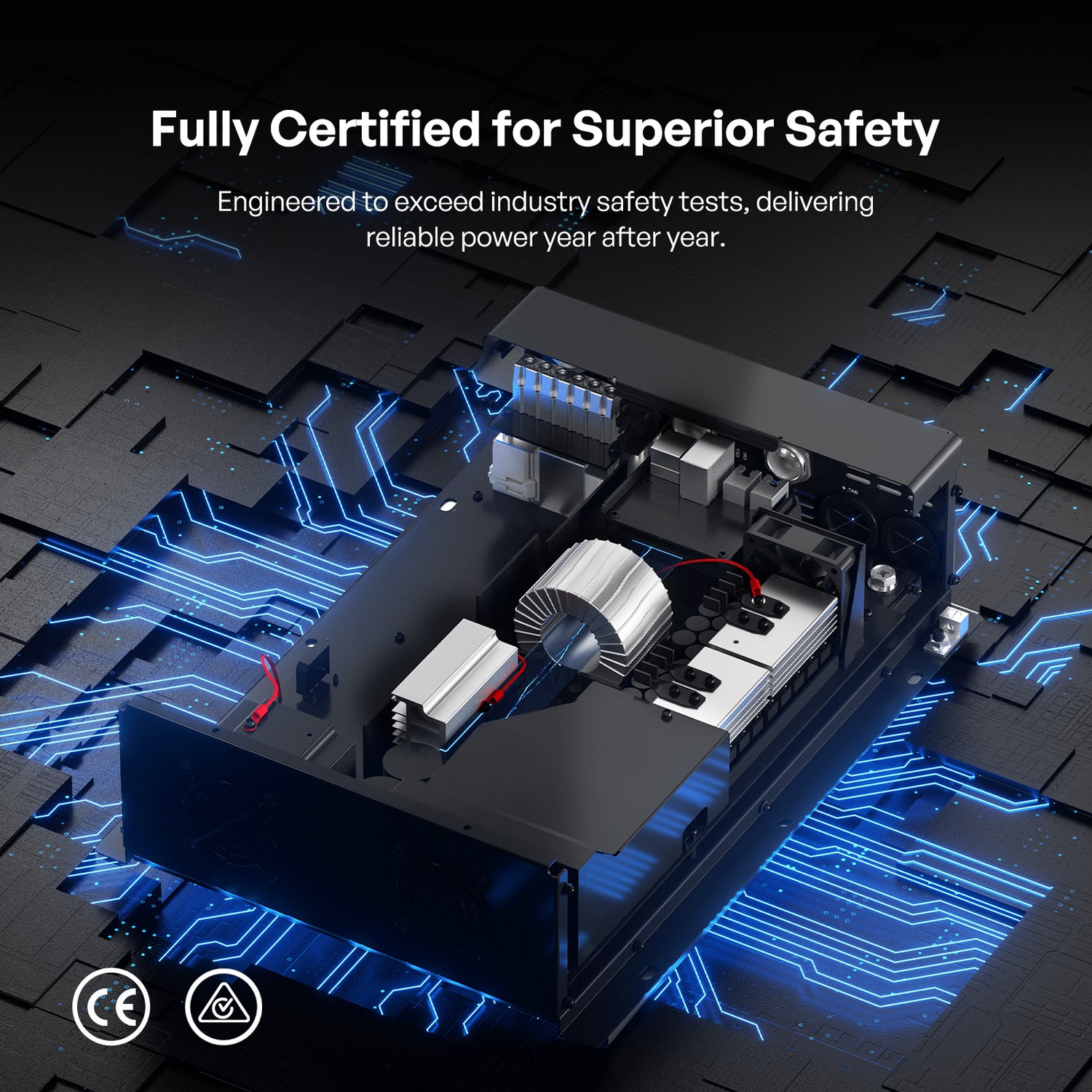Seamless power switching, smart battery charging, and pure sine output – unified in one powerful solution.