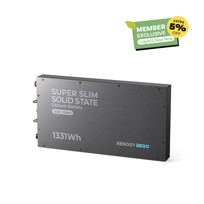 The new Renogy slimline LiFePO4 battery introduces revolutionary solid electrolytes, ensuring that the battery does not swell or burn when getting punctured or crushed.