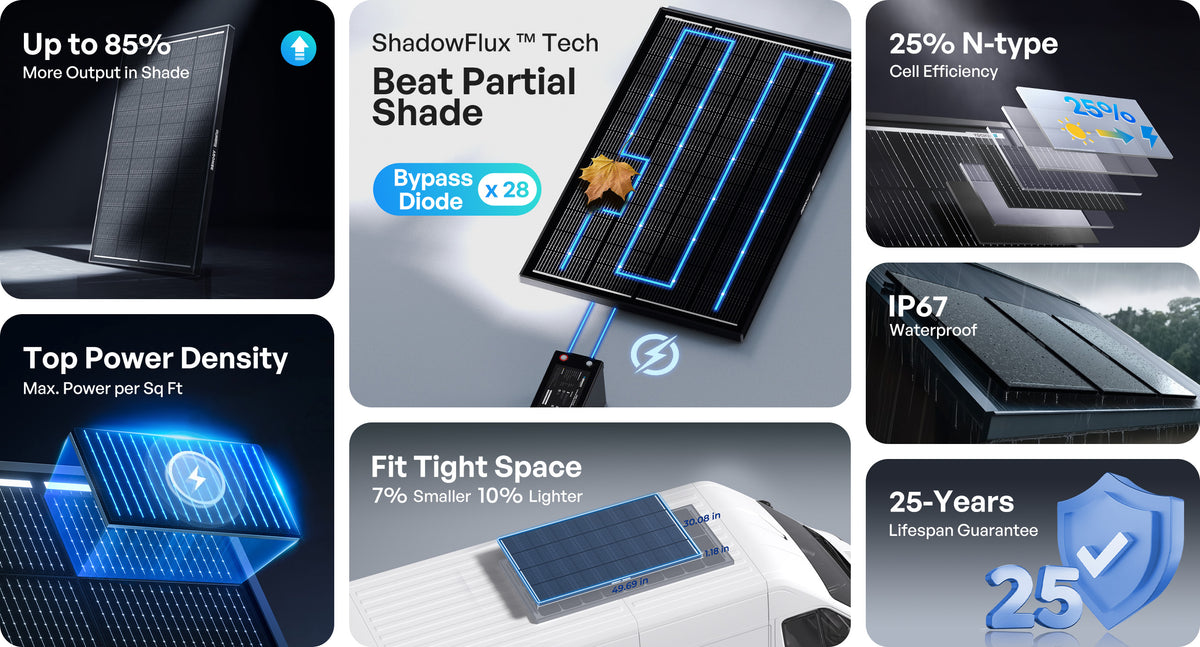 Renogy 200W 120W ShadowFlux Anti-Shading N-Type Solar Panel