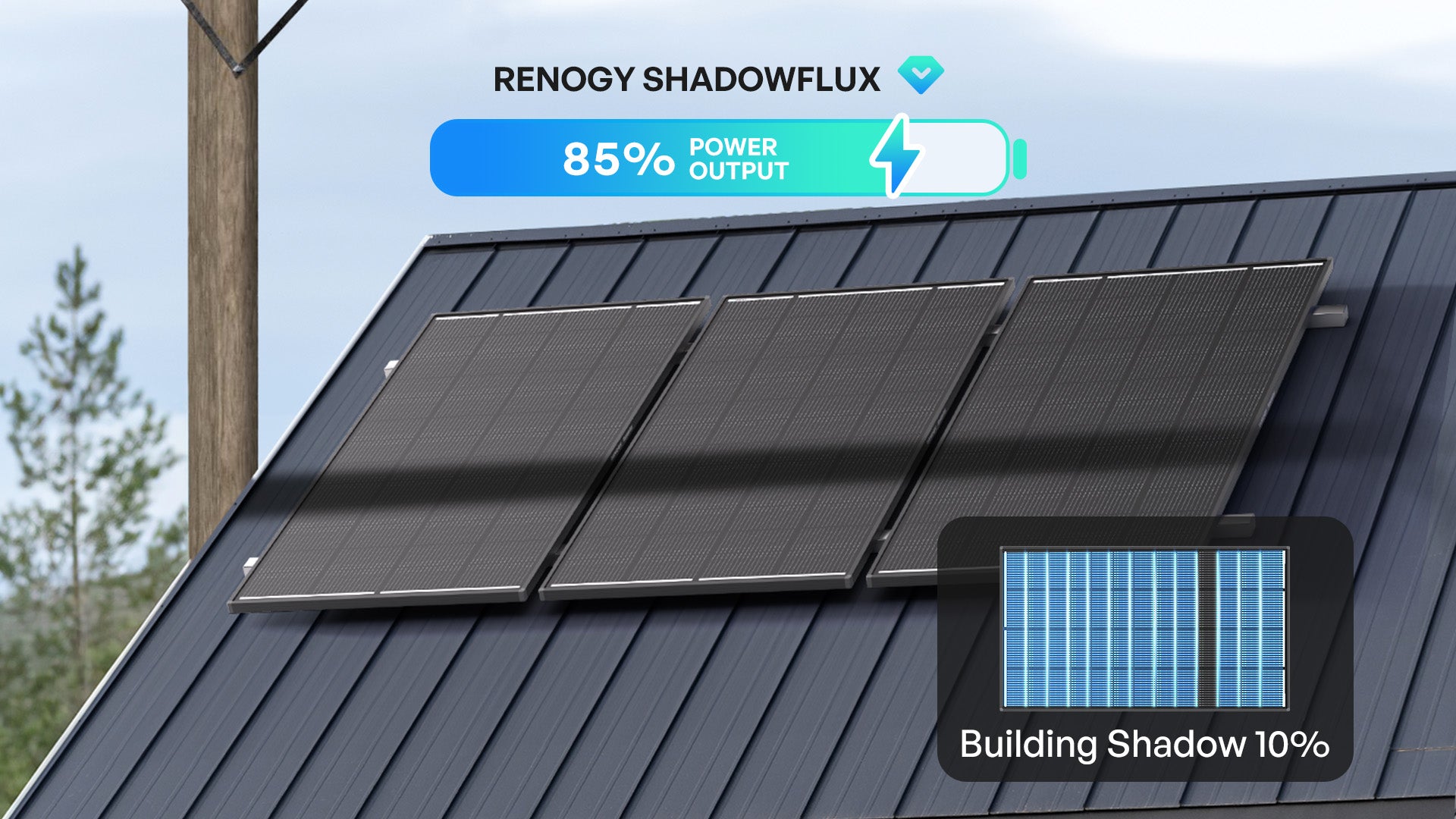 Conventional solar panels can suffer a total power loss from just a single shaded cell. ShadowFlux is engineered from the ground up to tackle the messy, complex shadows of the real world—so you keep generating power when others can't.