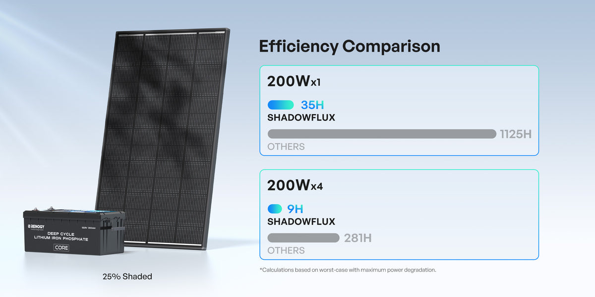 Drastically Reduced Power Loss: While all panels lose some power when shaded, ShadowFlux loses far less. You'll see significantly higher wattage output under the same shaded conditions compared to a conventional panel.