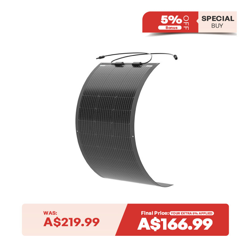 - Bendable up to 240°, weighs 1/3 of rigid panels, sleek all-black design.