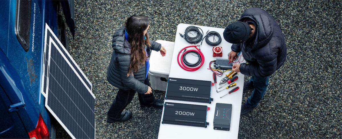 Yes. Our DC-DC Chargers with MPPT (30A, 40A, 50A) are specifically designed to work witYes, and this is a key benefit. TheDC-DC Chargerwill replenish your auxiliary batteries from the alternator while you drive. Simultaneously, thesolar panelson your roof can be charging the system. Theinvertercan also be used to power 230V devices on the move (e.g., charging camera batteries).