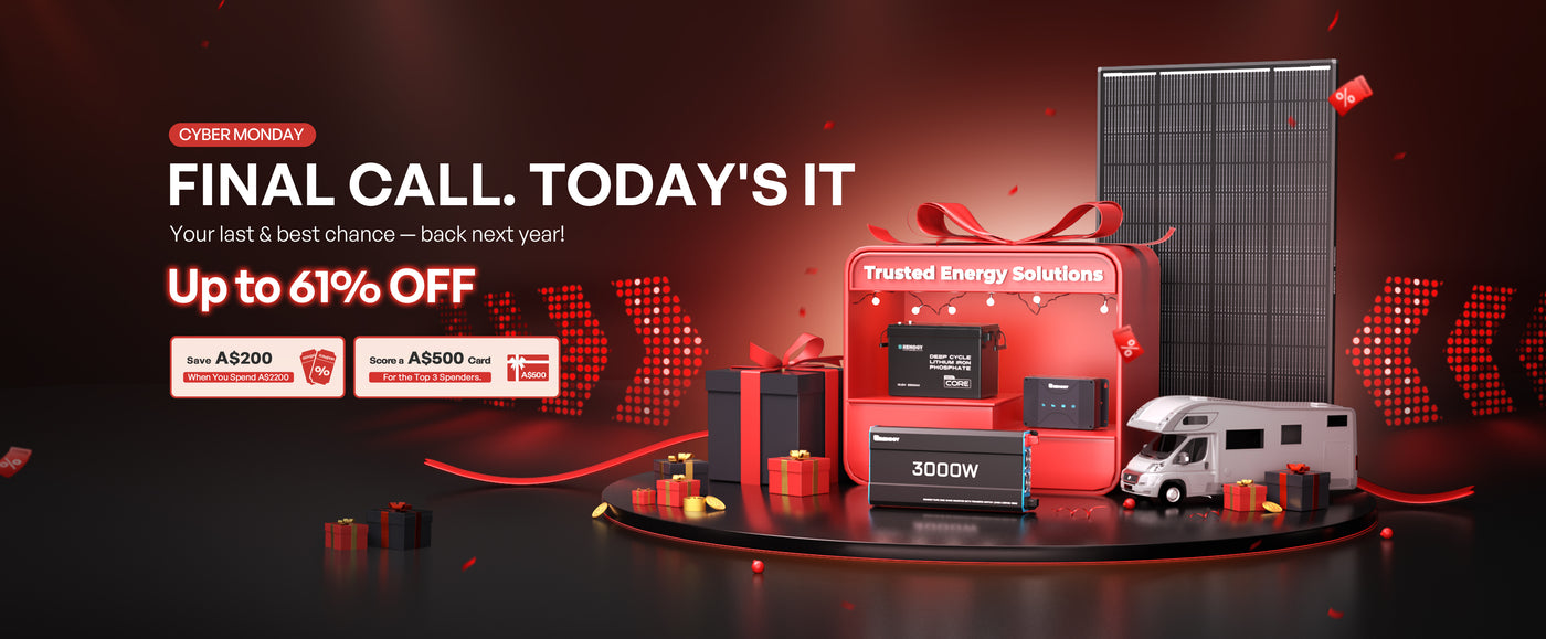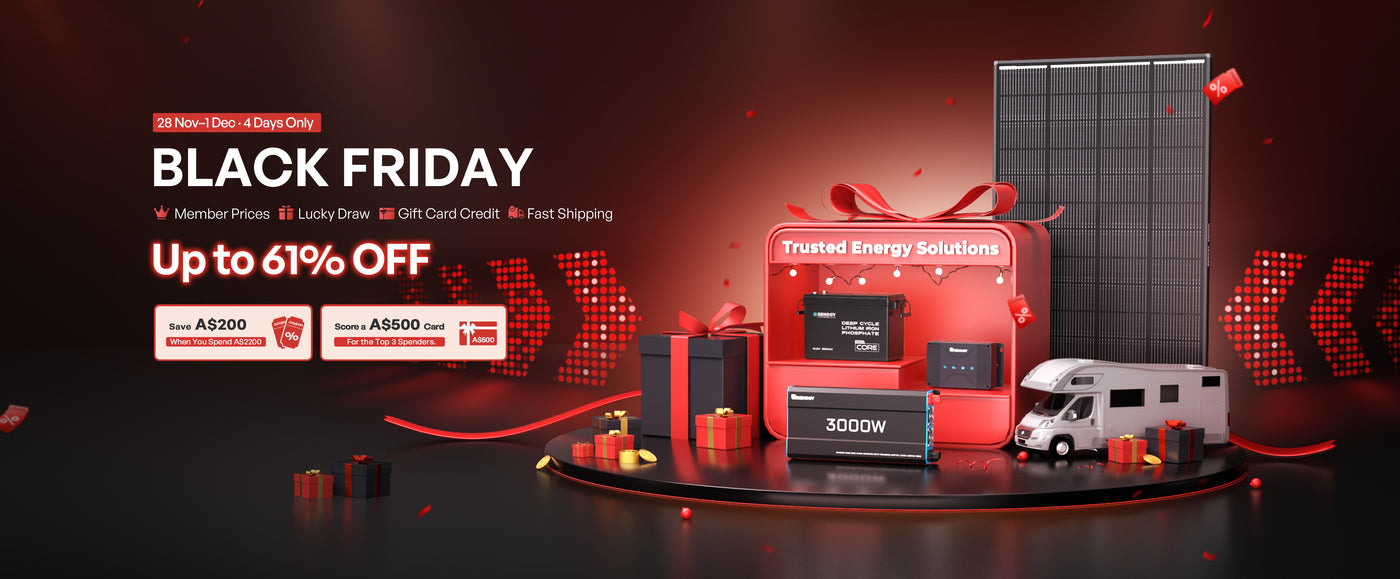 *Daily A$500 Gift Card Bonus: The three (3) customers with the highest cumulative spend each day (from 28 Nov to 1 Dec) will each be awarded a A$500 Renogy Gift Card. Winners will be notified via email within 10 days after each competition day.